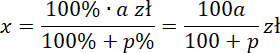 Po podwyżce o p% samochód kosztuje a zł. Jaka była cena samochodu przed podwyżką? Ułóż proporcję:
