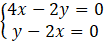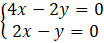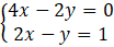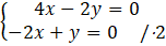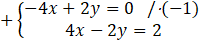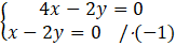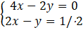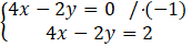 Zauważamy, że gdy pomnożymy obustronnie drugie równanie przez 2 to różnica dwóch tych samych liczb nie może mieć różnej wartości, czyli układ jest sprzeczny.
