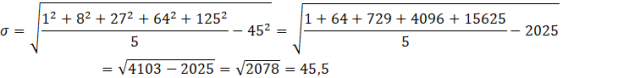 Najpierw zsumuj wartości danych i podziel przez ich ilość tak aby obliczyć średnią arytmetyczną. Następnie oblicz odchylenie standardowe, czyli zsumuj kwadraty wszystkich wartości ze zbioru, podziel je przez ich ilość, odejmij kwadrat średniej arytmetycznej i całość spierwiastkuj.
