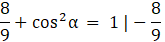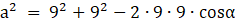 Kąt jest ostry, czyli cosinus kąta jest dodatni, czyli: