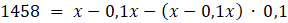 Oblicz cenę smartfona na początku i po obniżce, wiedząc że cenę smartfona obniżono o 10%, a potem jeszcze o 10%, obecna cena smartfona to 1458 zł.