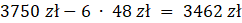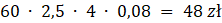 Oblicz wartość ceny zakupu 1500 sztuk lodów wiedząc, że cena w hurtowni za sztukę wynosi 2,5 zł, opakowanie zawiera 60 sztuk, a przy zakupie każdych 4 opakowań lodów jest udzielany rabat w wysokości 8%.