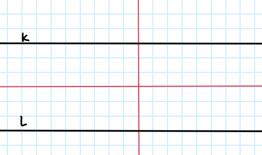 Dwie proste równoległe – oś symetrii leży w połowie odległości między nimi lub przecina je prostopadle.