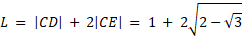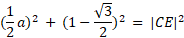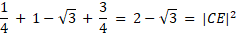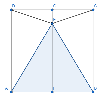 Oblicz obwód trójkąta CDE, przy założeniu, że trójkąt równoboczny ABE został umieszczony w kwadracie o boku 1, jak na rysunku.