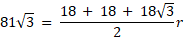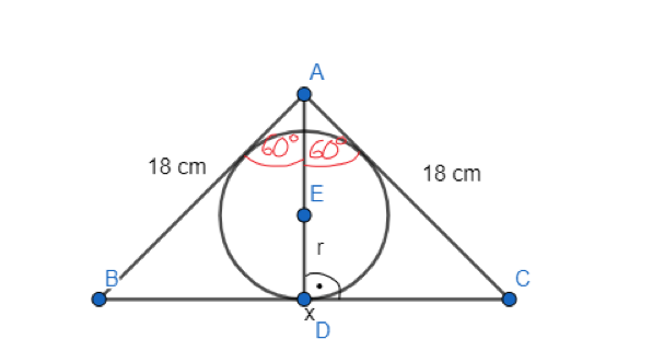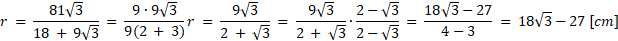 Oblicz promień okręgu wpisanego w trójkąt, w którym dwa boki mają długość 18 cm, a kąt między nimi wynosi 120°.