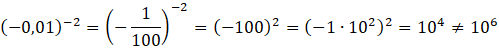 (-1000)-2 = (-1 ∙ 103)-2 = 10-6