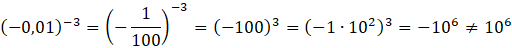 (-100)3 = (-1 ∙ 102)3 = -106 ≠ 106