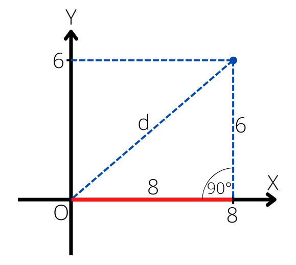 d2 = 82 + 62 = 64 + 36 = 100