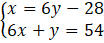 x = 6y – 28 = 6 ∙ 6 – 28 = 36 – 28 = 8