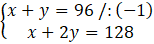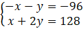 -x – y + x + 2y = -96 + 128