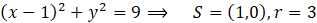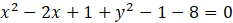 Przekształć równanie okręgu, do uzyskania jego środka i promienia. Dodaj i odejmij 1 z lewej strony równania.