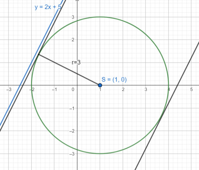Zauważ, że skoro prosta styczna do okręgu ma być równoległa do prostej