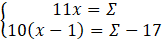 W określonej grupie uczniów średnia wieku jest równa 11. Najstarszy uczeń ma 17 lat, zaś średnia wieku pozostałych uczniów wynosi 10 lat. Oblicz, ilu uczniów znajduje się w tej grupie.
