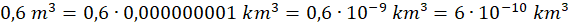 1 m³ to 0,000000001 km³