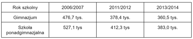 W tym zadaniu wykorzystując dane z tabeli ustal prawdopodobną liczbę nowo przyjętych uczniów gimnazjów i szkół ponadgimnazjalnych w latach szkolnych 2006/2007, 2011/2012, 2013/2014.