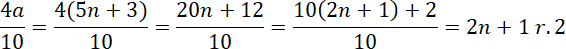 . Oznacza to, że po podzieleniu liczby a przez 5 dostaniemy resztę 3. Następnie podziel liczbę 4a przez 10 i oblicz jaka będzie reszta z tego dzielenia.
