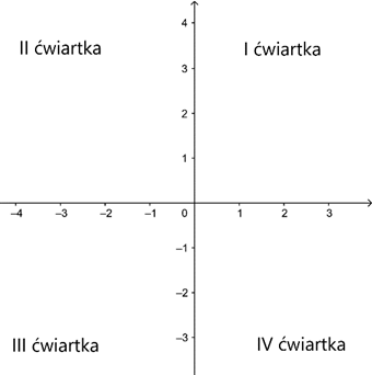 Jeżeli wykres funkcji przechodzi przez I, III i IV ćwiartkę układu współrzędnych to jego współczynnik kierunkowy musi być większy od zera, a jego wyraz wolny musi być mniejszy od zera.