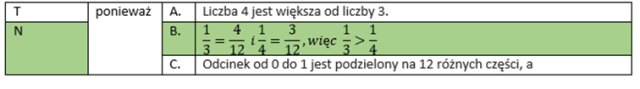 | T | ponieważ | A. | Liczba 4 jest większa od liczby 3. |
