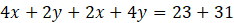 Obwód pierwszego prostokąta: 4x + 2y = 23