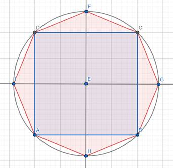 Narysuj ośmiokąt foremny, korzystając z rysunku okręgu przechodzącego przez 4 wierzchołki kwadratu.