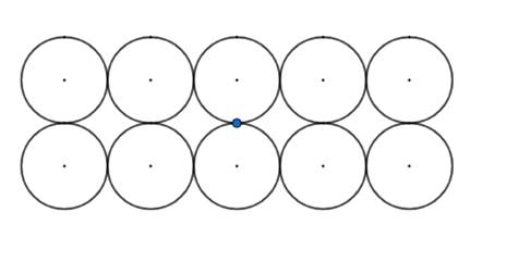 Przedstawiona powyżej figura ma środek symetrii i składa się z 10 okręgów. Środek symetrii jest zaznaczony niebieską kropką.