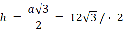 Oblicz objętość ostrosłupa, jeśli 150% wysokości podstawy ostrosłupa prawidłowego trójkątnego ma jego wysokość. Wysokość podstawy ma: