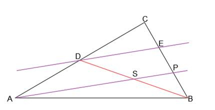 W trójkącie ABC poprowadzono środkową DB o środku w punkcie S. Z wierzchołka A przez punkt S poprowadzono prostą przecinającą bok BC w punkcie P. Udowodnij, że |CP| =