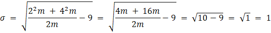 Dany jest zestaw 2, 2, 2, 4, 4, 4 o 2 m liczbach gdzie jest m liczb 2 i m liczb 4, odchylenie standardowe wynosi:
