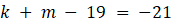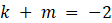 Warunki zadania spełniają pary liczb: k = -7, m = 5 lub k = -8, m = 6.