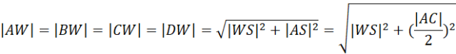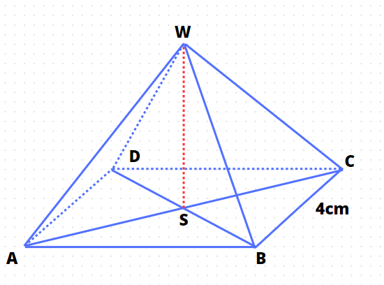 Aby prawidłowo obliczyć sumę wszystkich krawędzi ostrosłupa, należało obliczyć długość przekątnej podstawy, a następnie obliczyć krawędź boczną ściany bocznej ostrosłupa. W tym celu należy wykorzystać twierdzenie Pitagorasa.