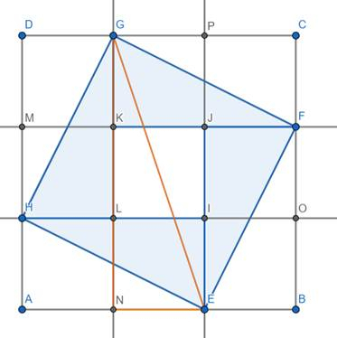 Analogicznie dla pozostałych kątów dowodzisz, że czworokąt EFGH jest kwadratem.