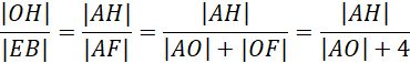 Z tego samego powodu trójkąty AOH i AEB są podobne , stąd: