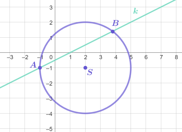 W zadaniu szukana jest długość odcinka AB. Punkty te leżą na prostej k, zatem ich współrzędne można zapisać jako: