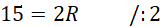Zauważ, że przeciwprostokątna jest równa długości dwóch promieni okręgu opisanego na trójkącie prostokątnym. Zapisz równanie: