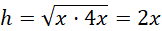 Zauważ, że w trójkącie prostokątnym wysokość opuszczona na przeciwprostokątną jest równa pierwiastkowi z iloczynu odcinków, na które dzieli przeciwprostokątna.