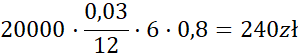 W tym zadaniu oblicz o ile wzrośnie stan konta po upływie jednego roku, jeżeli kapitalizacja odsetek następuje co 6 miesięcy, wiedząc, że kwotę 20 000 zł wpłacono na 12-miesięczną lokatę terminową z 3% roczną stopą procentową. Uwzględnij 20% podatek od odsetek.