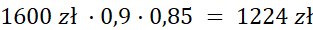 Procent oznacza setną część. Najpierw musimy obliczyć cenę po pierwszej obniżce, a następnie po drugiej (można obliczyć to w jednym działaniu, mnożąc przez wynikowe procenty po obniżce), aby na końcu obliczyć różnicę ceny początkowej i końcowej celem obliczenia oszczędności.