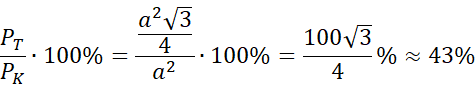 Oblicz jaki procentem pola kwadratu jest pole trójkąta równobocznego, jeśli obie figury mają boki takiej samej długości.