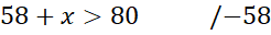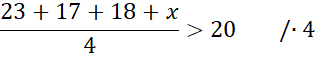 Zauważ, że średnia arytmetyczna wyników z czterech sprawdzianów musi być większa od 20. Zapisz to za pomocą nierówności i wyznacz z niej wartość