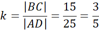 Zauważ, że boki CD i BD oraz BD i AB są w stosunku do siebie w obliczonej skali. Zapisz to za pomocą równań i wyznacz z nich długości boków BD i AB.