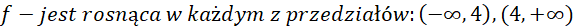 Aby odpowiedzieć na następujące pytania, wyznaczamy dziedzinę, miejsca zerowe, asymptoty i przedziały monotoniczności, zdanie D okazuje się nie dotyczyć naszej funkcji, gdyż