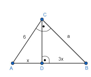 W trójkącie prostokątnym krótsza przyprostokątna ma długość 6. Wysokość poprowadzona z wierzchołka kąta prostego podzieliła przeciwprostokątną w stosunku 1:3. Oblicz obwód tego trójkąta.