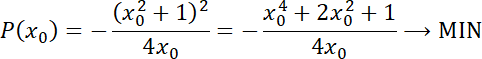 , w którym poprowadzona styczna do wykresu ogranicz wraz z osiami układu trójkąt o możliwie najmniejszym polu.