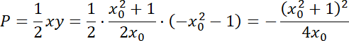 jest pochodną tej funkcji w punkcie P. Kolejno zauważ, że skoro trójkąt ograniczony jest przez osie układu współrzędnych, to jest on prostokątny, a jego pole wynosi