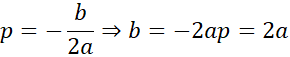 Uzależniamy współczynnik b od współczynnika a za pomocą wzoru na p wierzchołka paraboli i wstawiając współrzędne wierzchołka pod tak zmodyfikowany wzór, wyznaczamy współczynnik kierunkowy a.