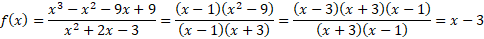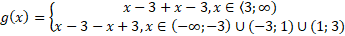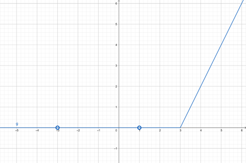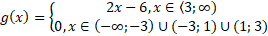 Zauważ, że zarówno licznik, jak i mianownik ułamka można rozpisać na iloczyn jednomianów przy użyciu tabeli Hornera i wzorów skróconego mnożenia. Określ dziedzinę funkcji – pamiętaj, że mianownik nie może przyjmować wartości 0. Wykres g(x) należy rozpatrzeć w dwóch przedziałach, uwzględniając dziedzinę funkcji f.