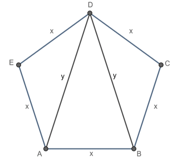 Ustal prawdziwość poniższych stwierdzeń, jeśli przekątne poprowadzone z jednego wierzchołka pięciokąta foremnego podzieliły ten pięciokąt na trzy trójkąty.