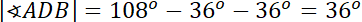Następnie zauważ, że trójkąty AED, ABD i BCD są równoramienne, więc miara ich kątów przy podstawach będzie taka sama. Dodatkowo skorzystaj z tego, że suma miar kątów w trójkącie wynosi