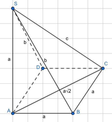 Oblicz długość pozostałych krawędzi tego ostrosłupa oraz jego pole powierzchni całkowitej, jeśli podstawą ostrosłupa o wierzchołku S jest kwadrat ABCD o boku