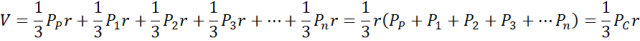 Ostrosłup można podzielić na mniejsze ostrosłupy, których wierzchołkami jest środek kuli na której jest opisany, więc wysokością każdego z nowopowstałych ostrosłupów jest promień kuli, a podstawą każda ze ścian bocznych, więc: